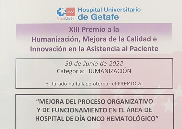 Premio a la Humanización, Mejora de la Calidad e Innovación en la Asistencia al Paciente - Hospital Universitario de Getafe